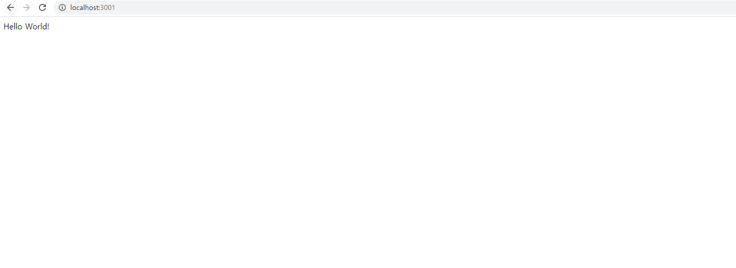 const express = require('express') const app = express() const port = 3001 app.get('/', (req, res) => res.send('Hello World!')) app.listen(port, () => console.log('Example app listening on port ${port}!'))index.js에 추가