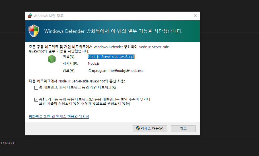 vscode 안에있는 터미널 열고 npm install express --save 명령어로 설치