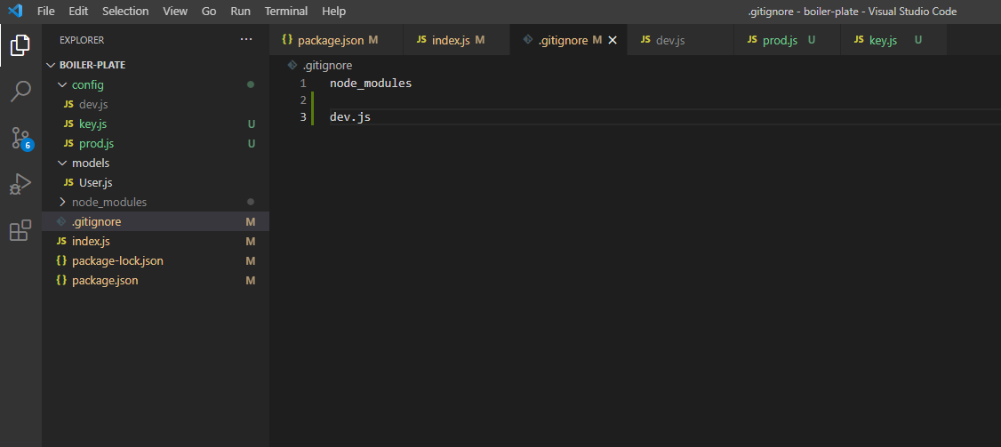 config폴더엔 당연히 dev.js가 없다 왜냐하면 .gitignore에 추가해놓았으니...