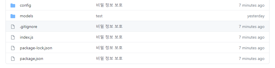 git add . git status git commit -m "비밀 정보 보호" git push origin main //원래 git push origin master인데 안되서 main으로 하니까 됨