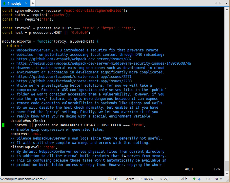 리액트에 외부에서 도메인으로 접속할려고 할때 Invalid host header라는 오류로 접속이 안되는데 이때