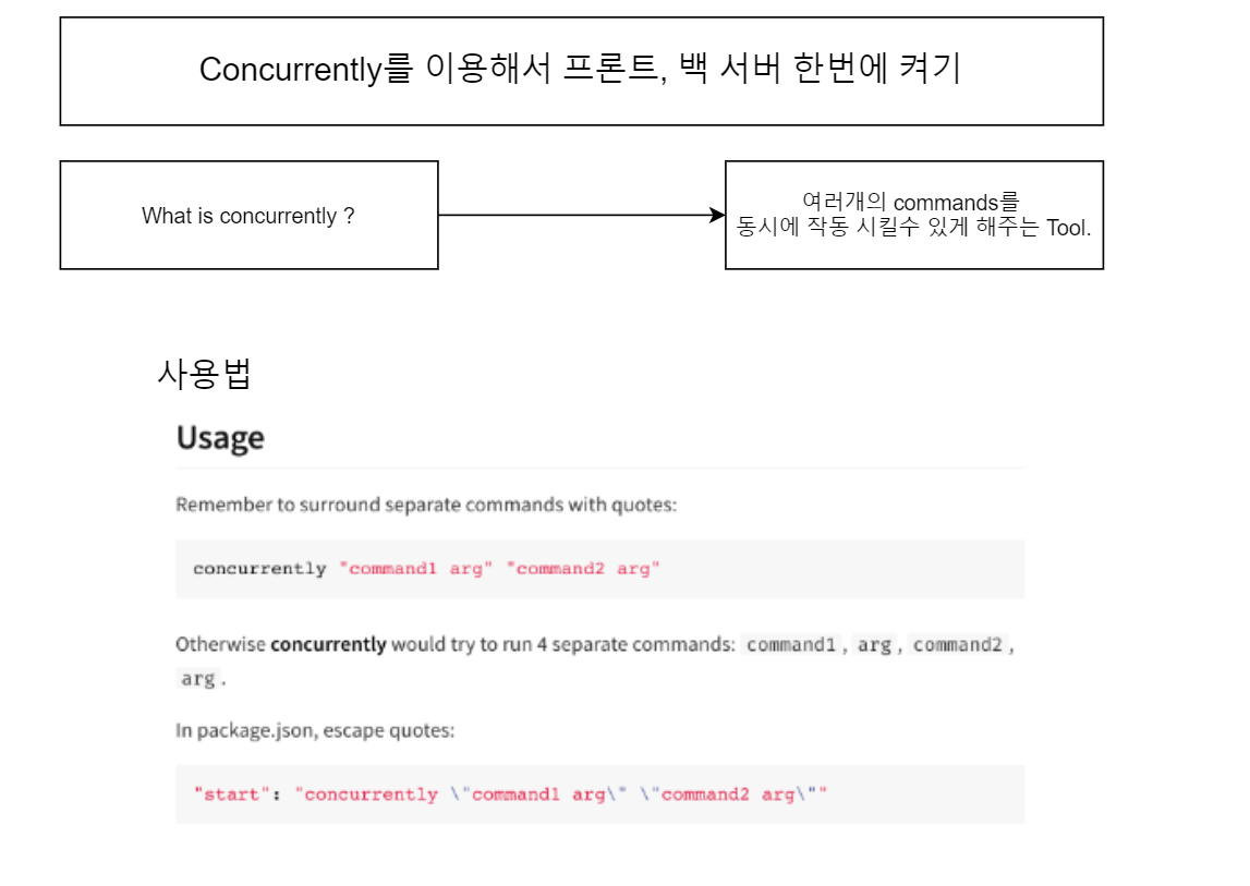 client와 server를 동시에 키고 끌 수 있께 하는 라이브러리를 설치 /BOILER-PLATE에서 npm install concurrently --save