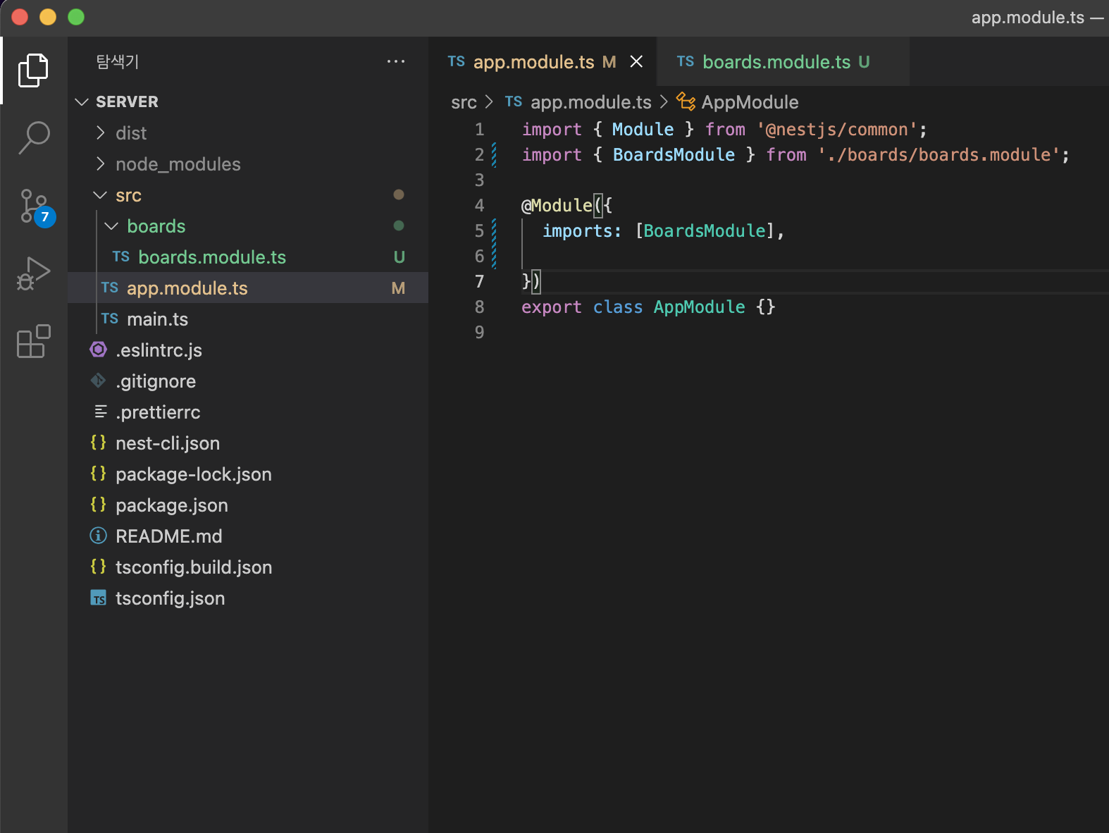 - 생성한 BoardModule에다가 필요한 모듈들을 추가 해준다.