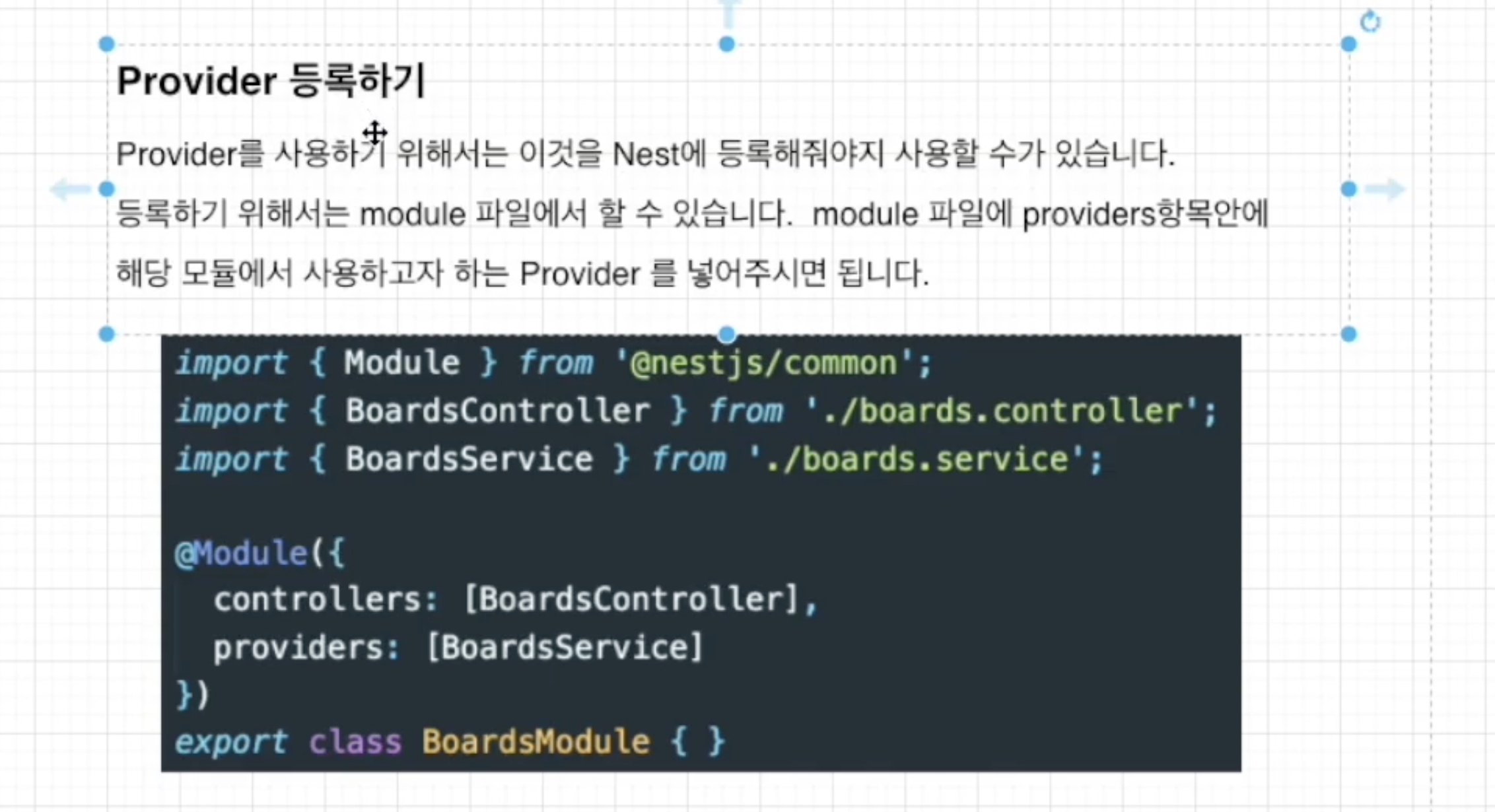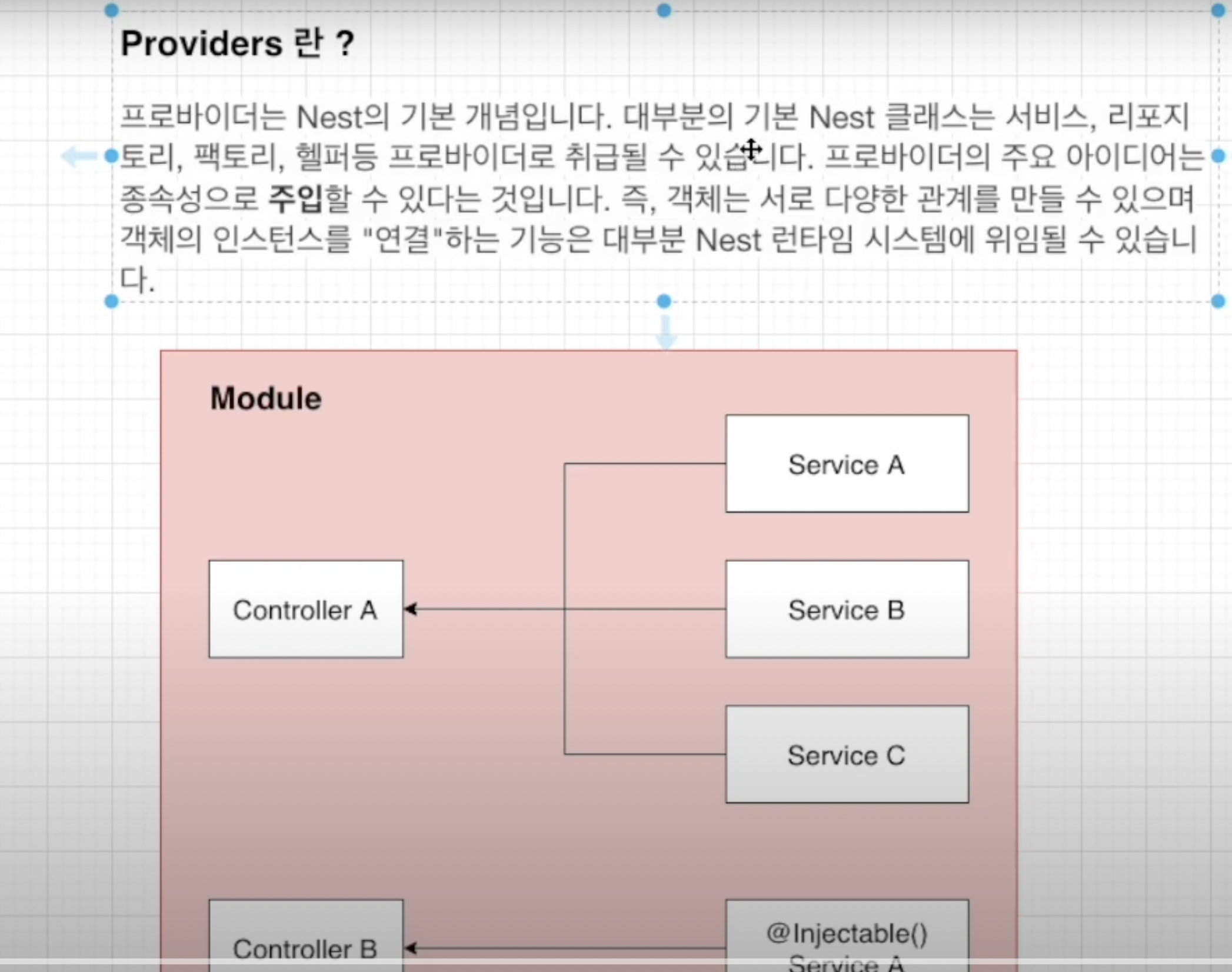 - @Injectable 데코레이터로 감싼 후 제공 되야함.
