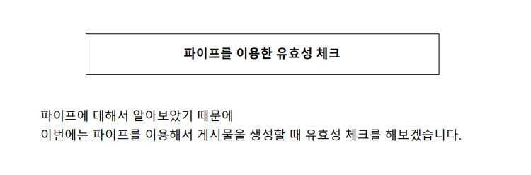 현재는 게시물을 생성할 때 이름과 설명에 아무런 값을 주지 않아도 아무 문제 없이 생성이 됩니다. 이 부분을 파이프를 이용해서 수정해주겠습니다.