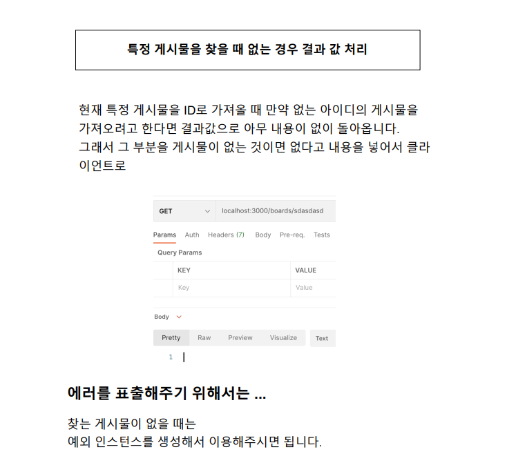 찾으려고 하는 특정 게시물이 존재 하지 않았을때 에러 메세지가 표시를 해준다.