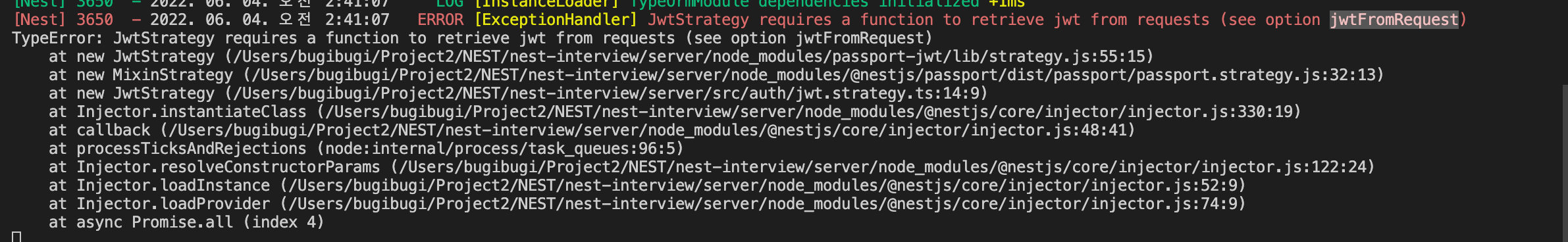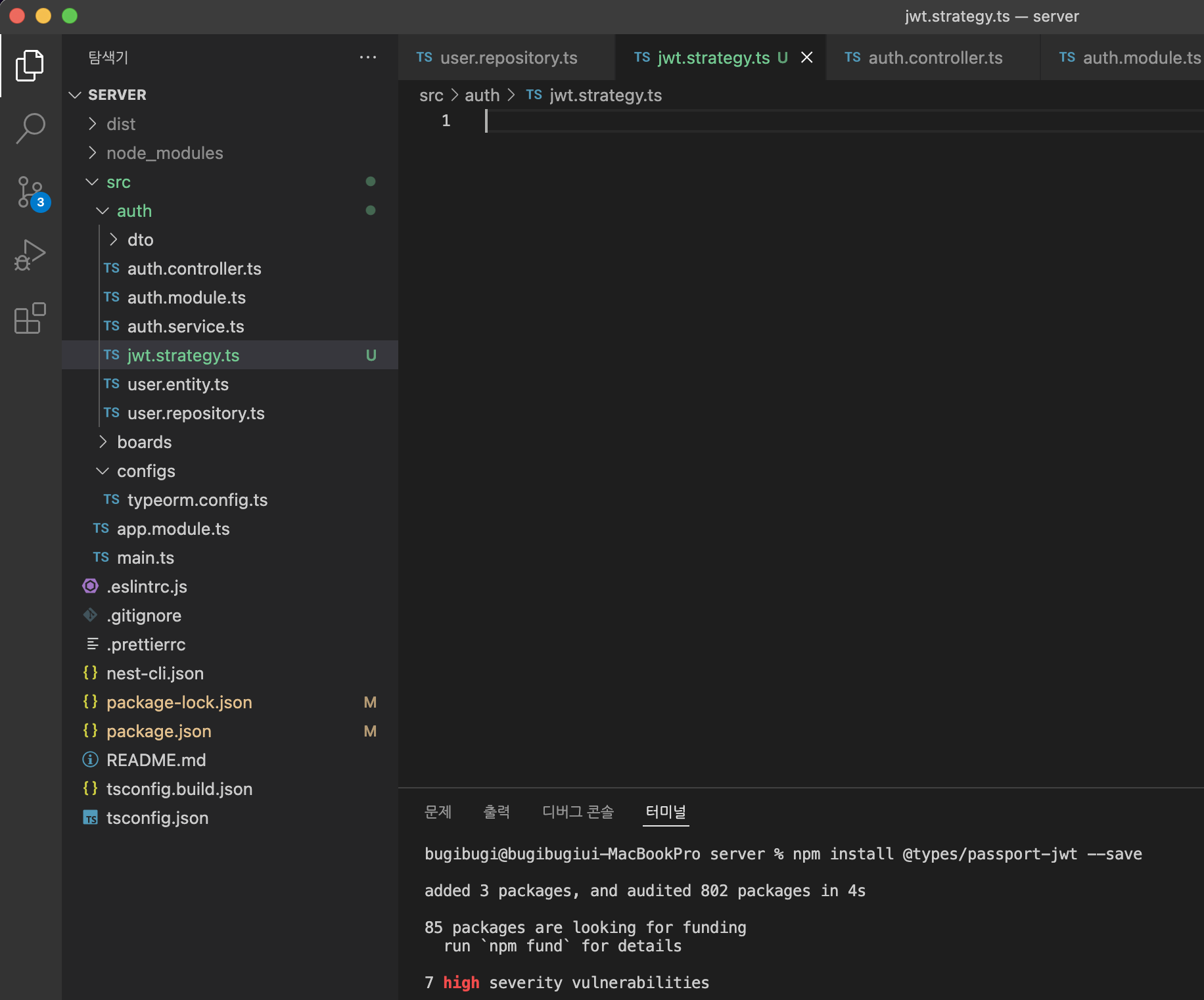 npm install @types/passport-jwt --save //passport-jwt 모듈을 위한 타입 정의 모듈모듈 설치하기.
