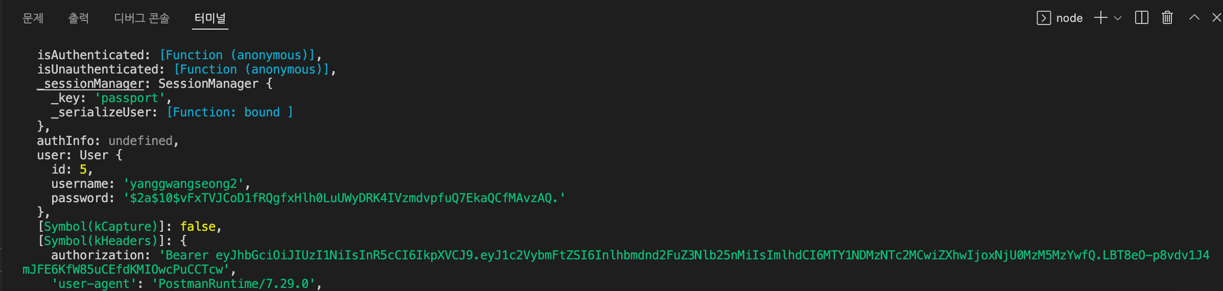 req에 user객체가 담겨 있는걸 console.log로 알 수 있다