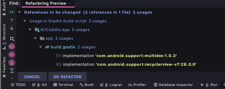 그러면 Refactoring Preview탭이 생기고 거기서 Do Refactor 버튼을 눌리면 자동으로 디펜던시가 바뀜.!!