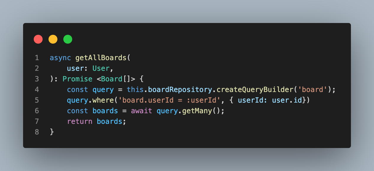 현재는 getAllBoards 서비스 함수가 게시물을 가져올 때 어떠한 유저인지에 상관 없이 모든 게시물을 가져옵니다.