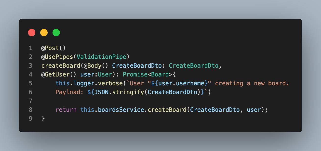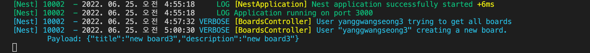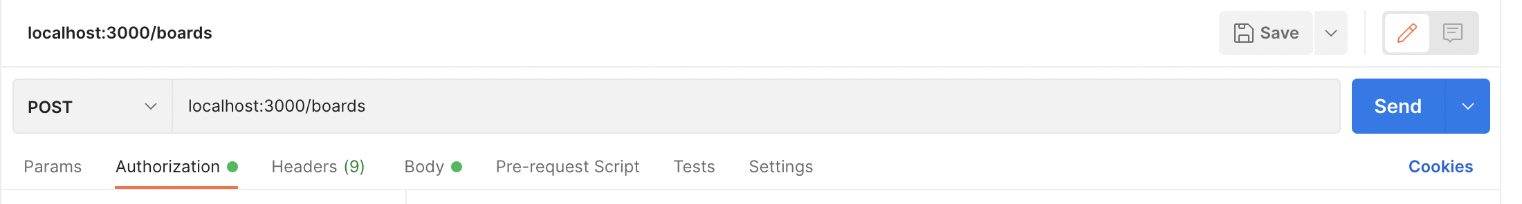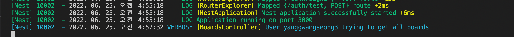 Nestjs에 swagger 적용 (0) 2022.12.08 nest.js typeorm 레포지토리 (0) 2022.12.08 [m1 맥북] - nest.js 공부하기 39. 자신이 생성한 게시물을 삭제하기 (0) 2022.06.25 [m1 맥북] - nest.js 공부하기 38. 해당 유저의 게시물을 ID로 가져오기, 수정하기 (0) 2022.06.25 [m1 맥북] - nest.js 공부하기 37. 해당 유저의 게시물만 가져오기 (0) 2022.06.25