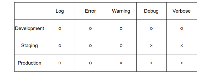 원하는 대로 환경에 따라서 로그의 레벨을 정의해서 넣어줄 수 있습니다.