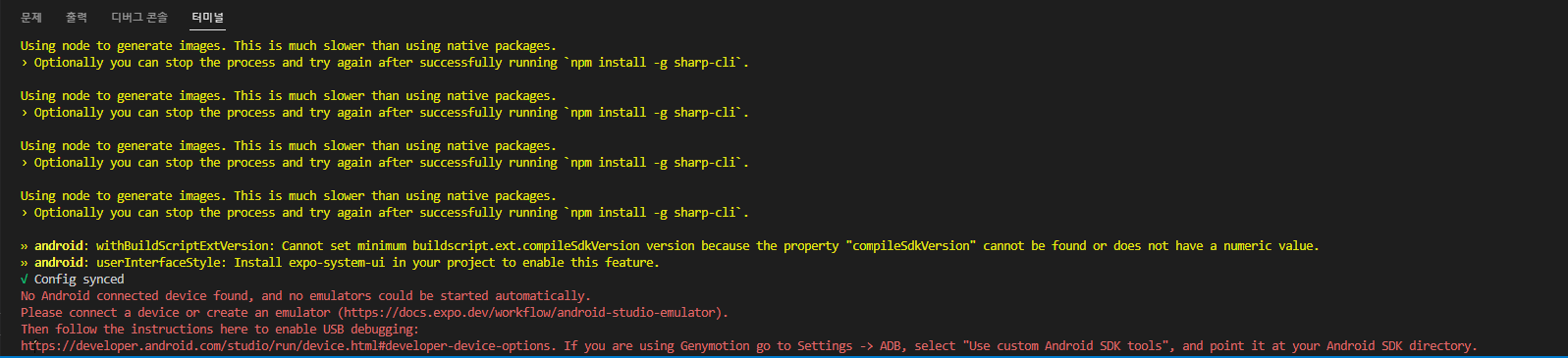 expo run:android이용해서 설치 하는데, 에러가 발생한다...