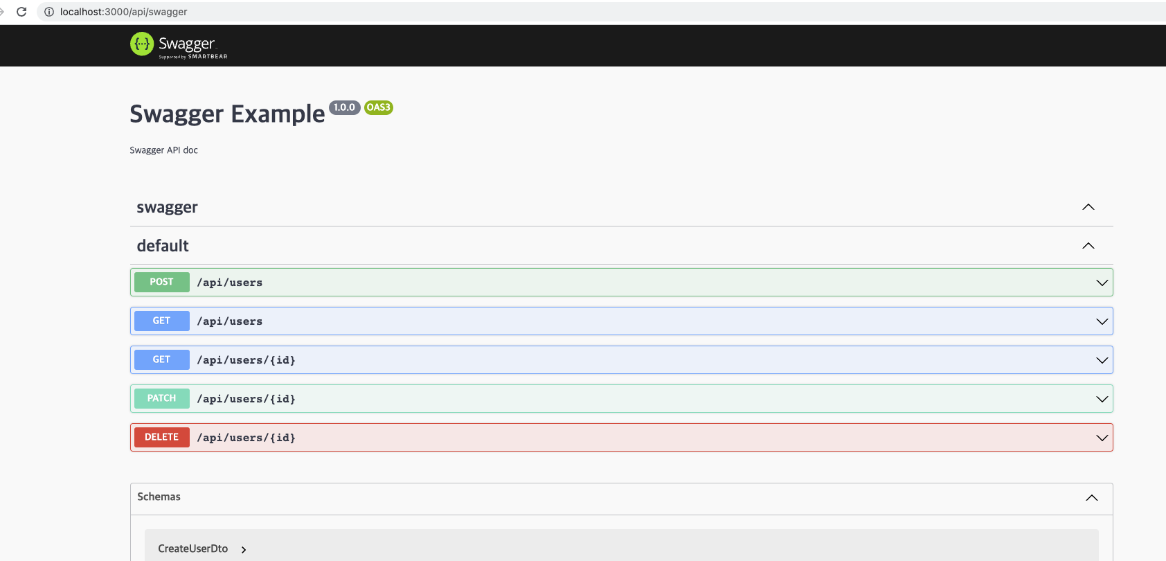 async function bootstrap() { const app = await NestFactory.create(AppModule); app.setGlobalPrefix('api'); const config = new BaseAPIDocument().initializeOptions(); const document = SwaggerModule.createDocument(app, config); SwaggerModule.setup('api/swagger',app, document); await app.listen(5001); }app.setGlobalPrefix를 줬기 때문에 swagger 경로에 앞에 api를 꼭 붙여줘야 접속 된다.