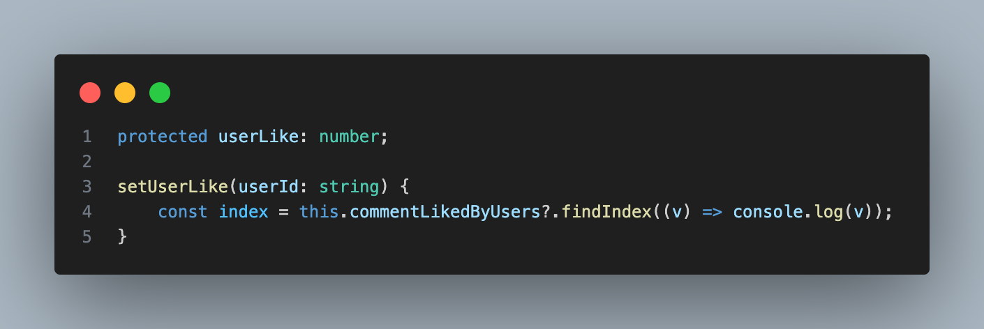 comment.entity에 본인이 누른 좋아요 userLike속성을 만들고 해당 userLike가 있는지 체크 해주는 함수 setUserLike함수를 만들어서