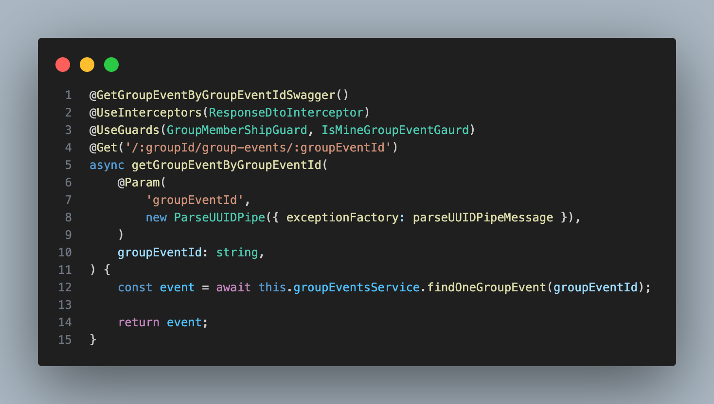 이글에서 NestJS Interceptor와 class-transforemr의 plainToInstance를 이용하여 인스턴스화 해서 responseDto를 활용 해볼려고 한다.- group-event-item-res.dto.ts