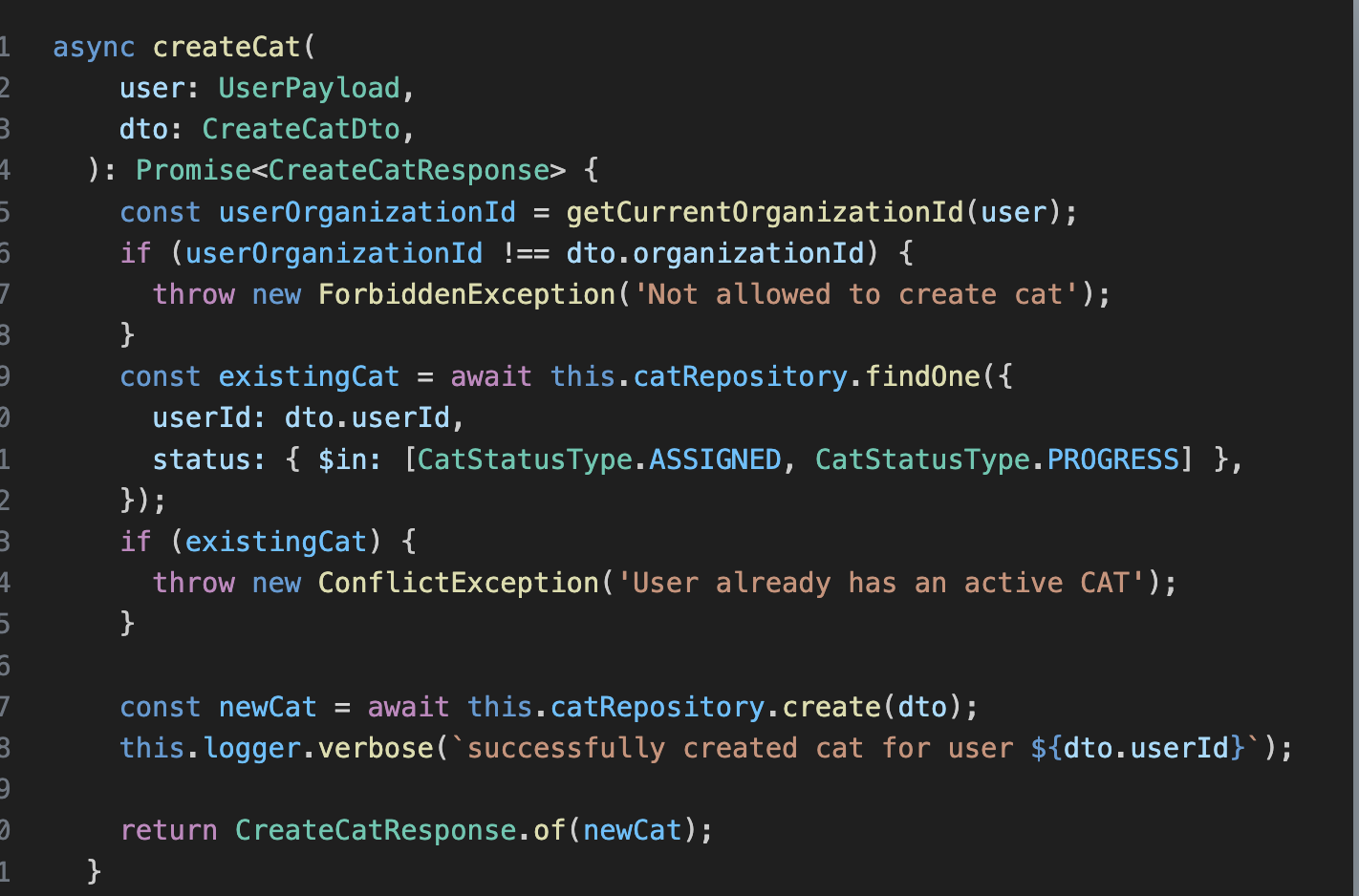 CreateCatResponse에서 of라는 메서드는 static 메서드로 해당 메서드를 통해서 class-transformer를 이용해서 newCat이라는 plainObject들을 CreateCatResponse dto로 serialize 한다.