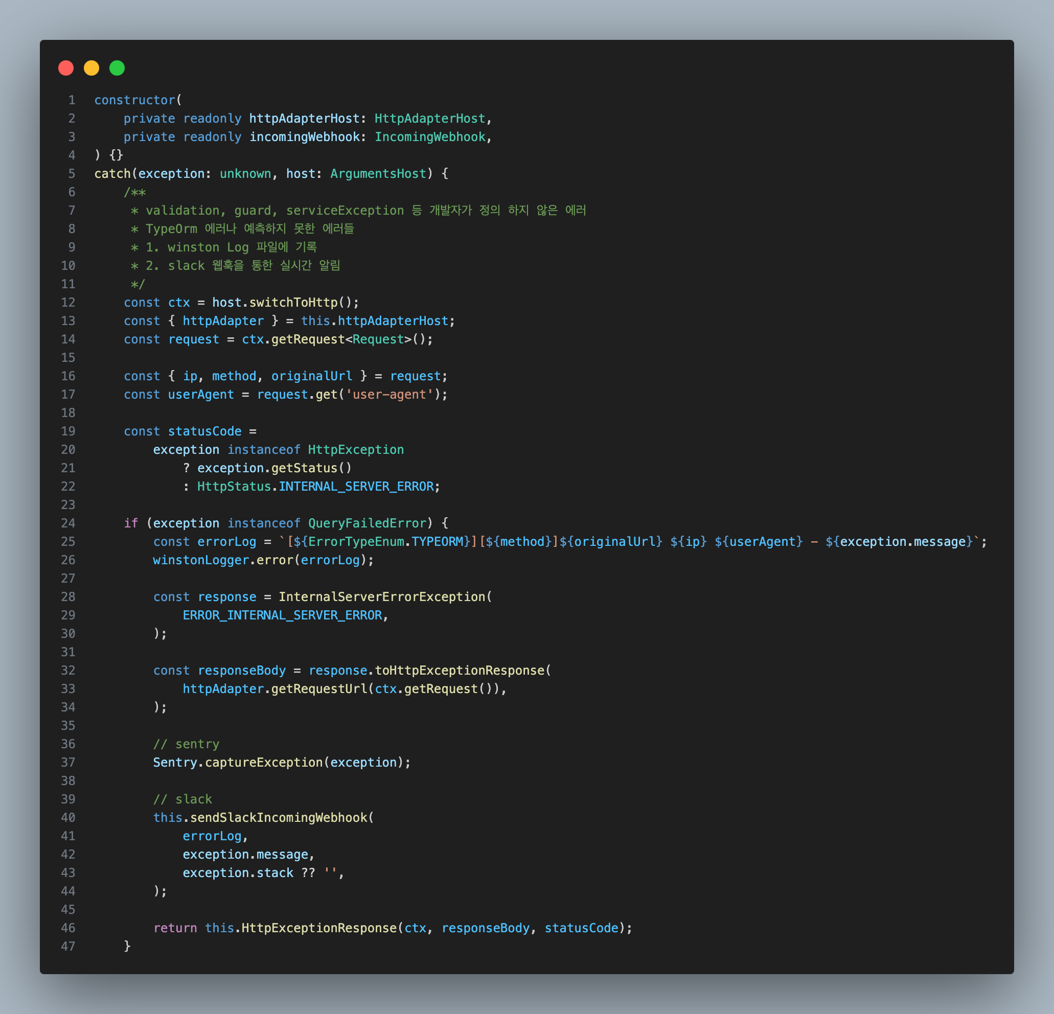 catch 할 수 없는 에러들을 slack 웹훅을 통해 slack 실시간 알림 보내기Nest.js 2024. 8. 16. 12:28728x90