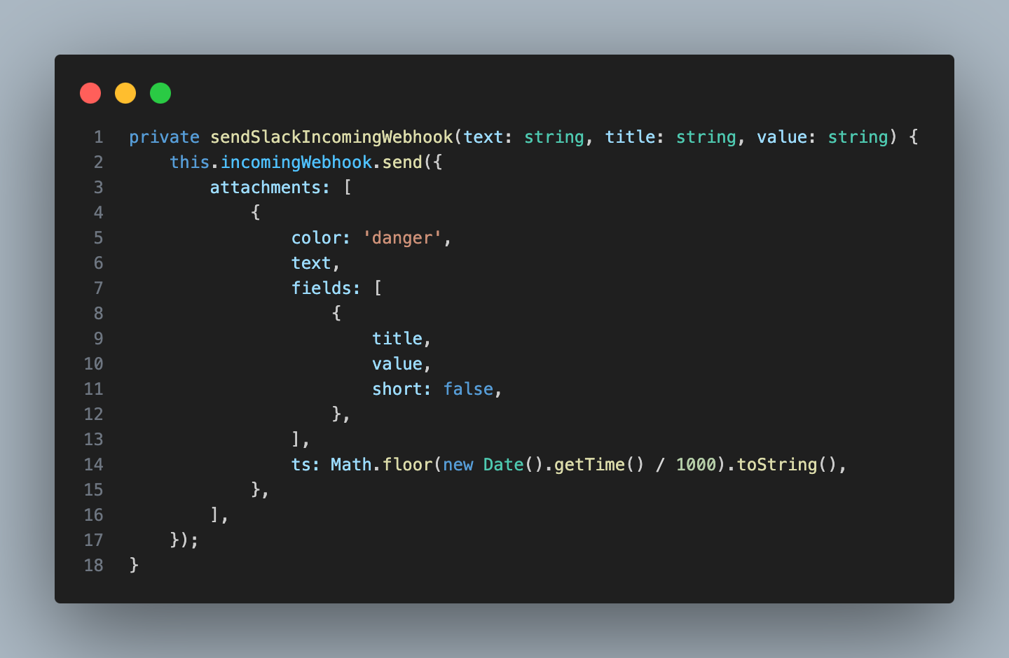 $ npm i @slack/webhookmain.ts