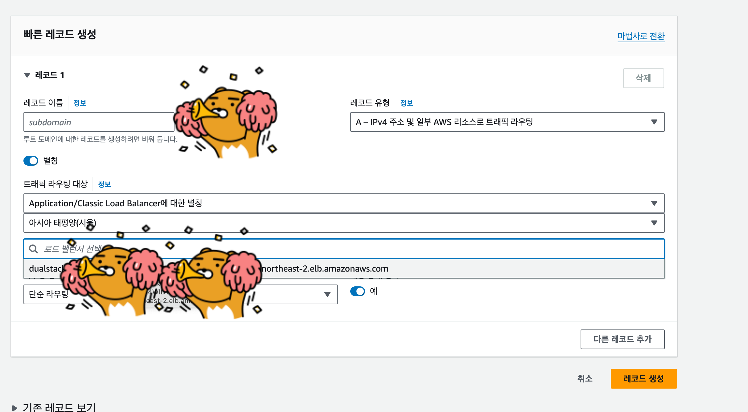 -> 레코드 생성로드 밸런서로 443 포트 열어주기