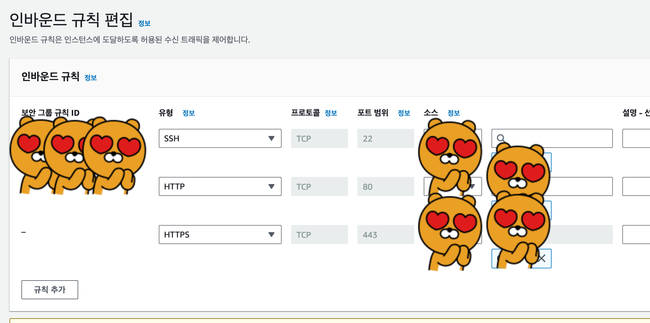 1년에 500밖에 하지 않는다.2. SSL 연결을 위한 443 포트 인바운드 규칙 추가