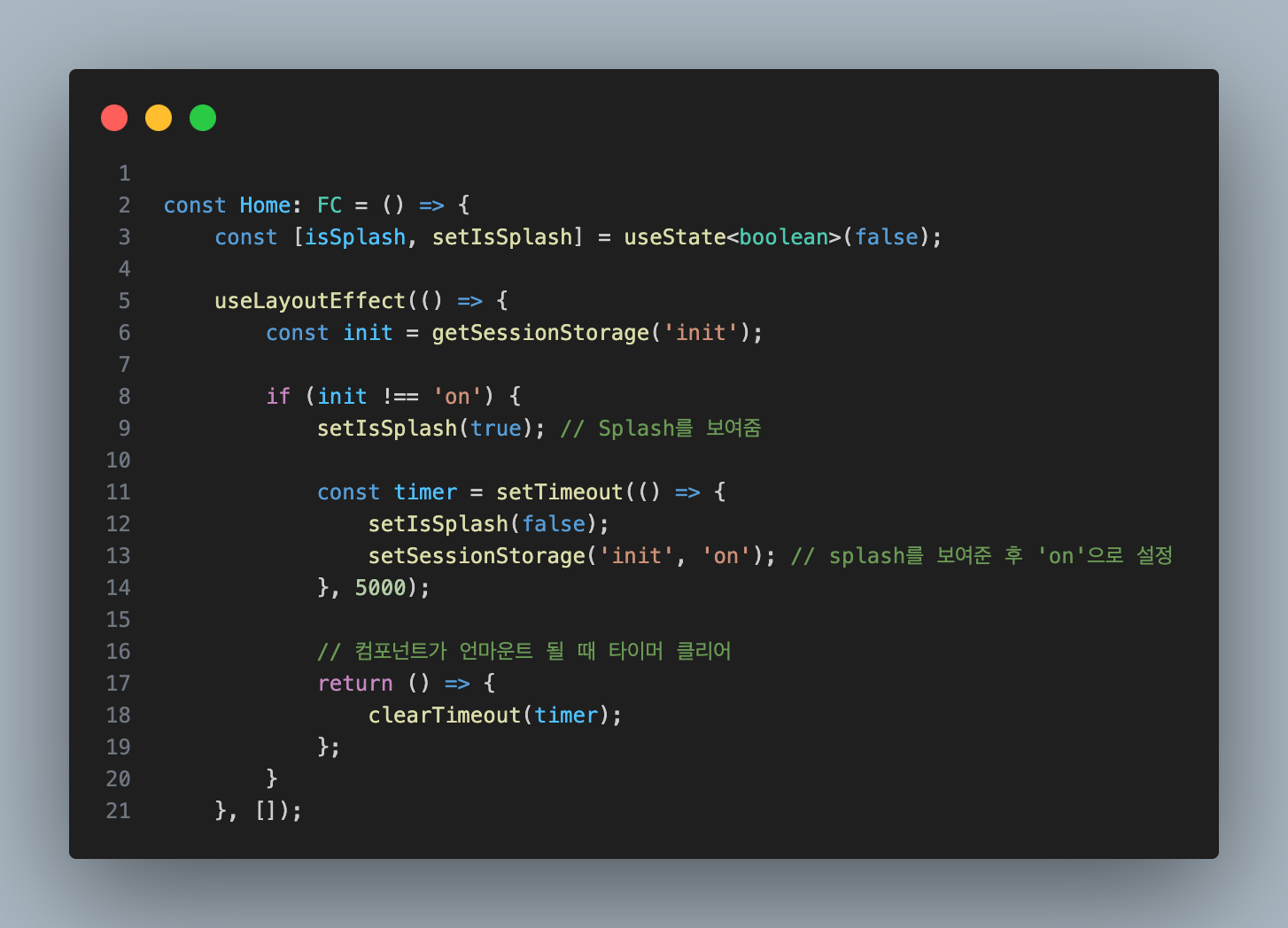 해당 Home 컴포넌트가 호출 되면서 useLayoutEffect에 경고 에러가 발생했다. Reference를 참고하여 2번째 방법으로 해결했다.