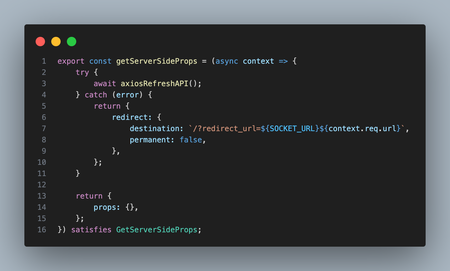 SSR으로 axiosRefreshAPI가 실패 할 경우 reriect를 이용하여 메인 페이지로 보내게 SSR 실행하게 만들었다.