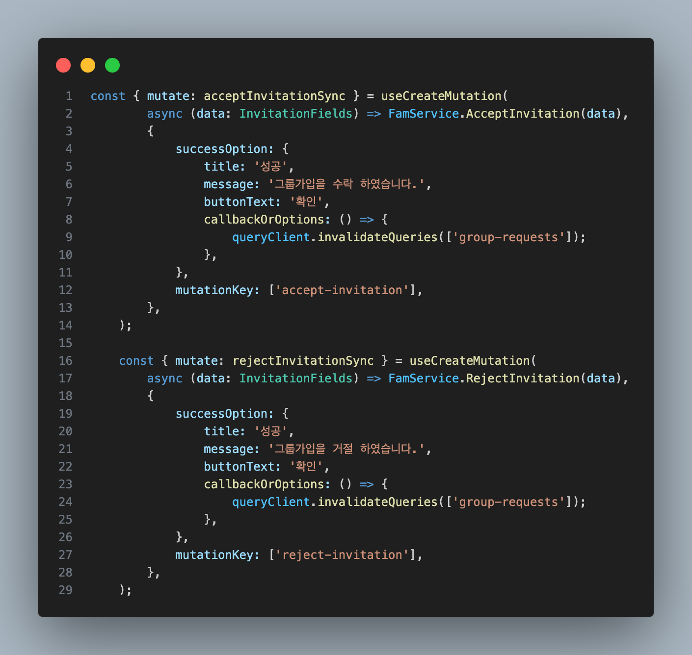 - mutationFn과 mutationKey를 커스텀훅이 호출 하는곳에서 넘겨주기