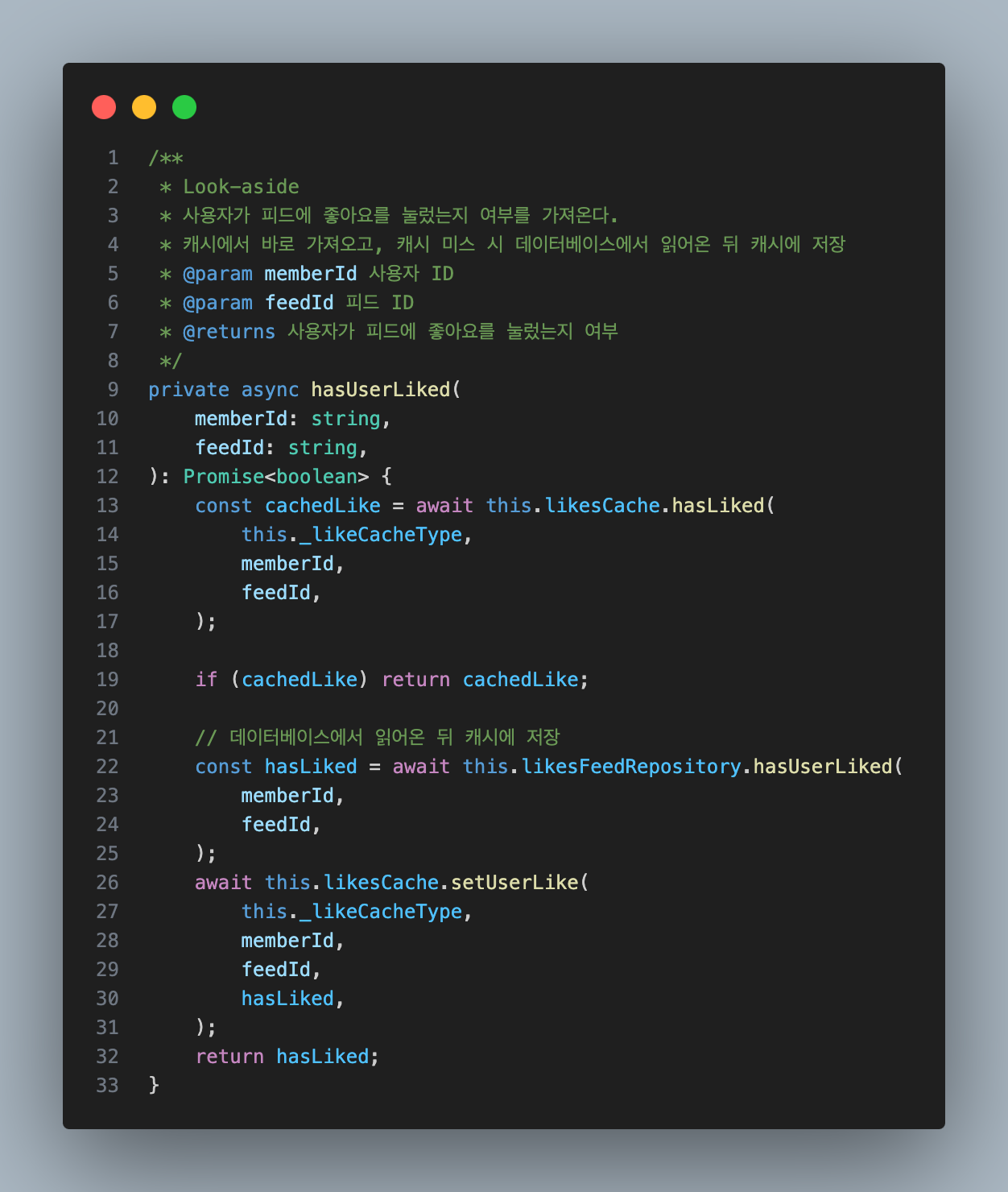 - Redis Set에 해당 피드의 좋아요 사용자 ID가 있는지 확인 (캐시 조회).