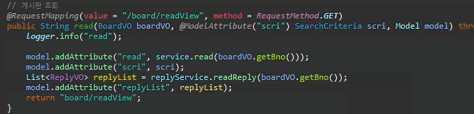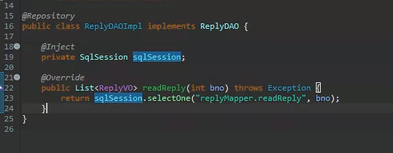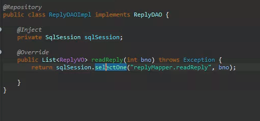 DAO에 가보면 sql쿼리결과를 가져오는 부분이 있는데 여기서